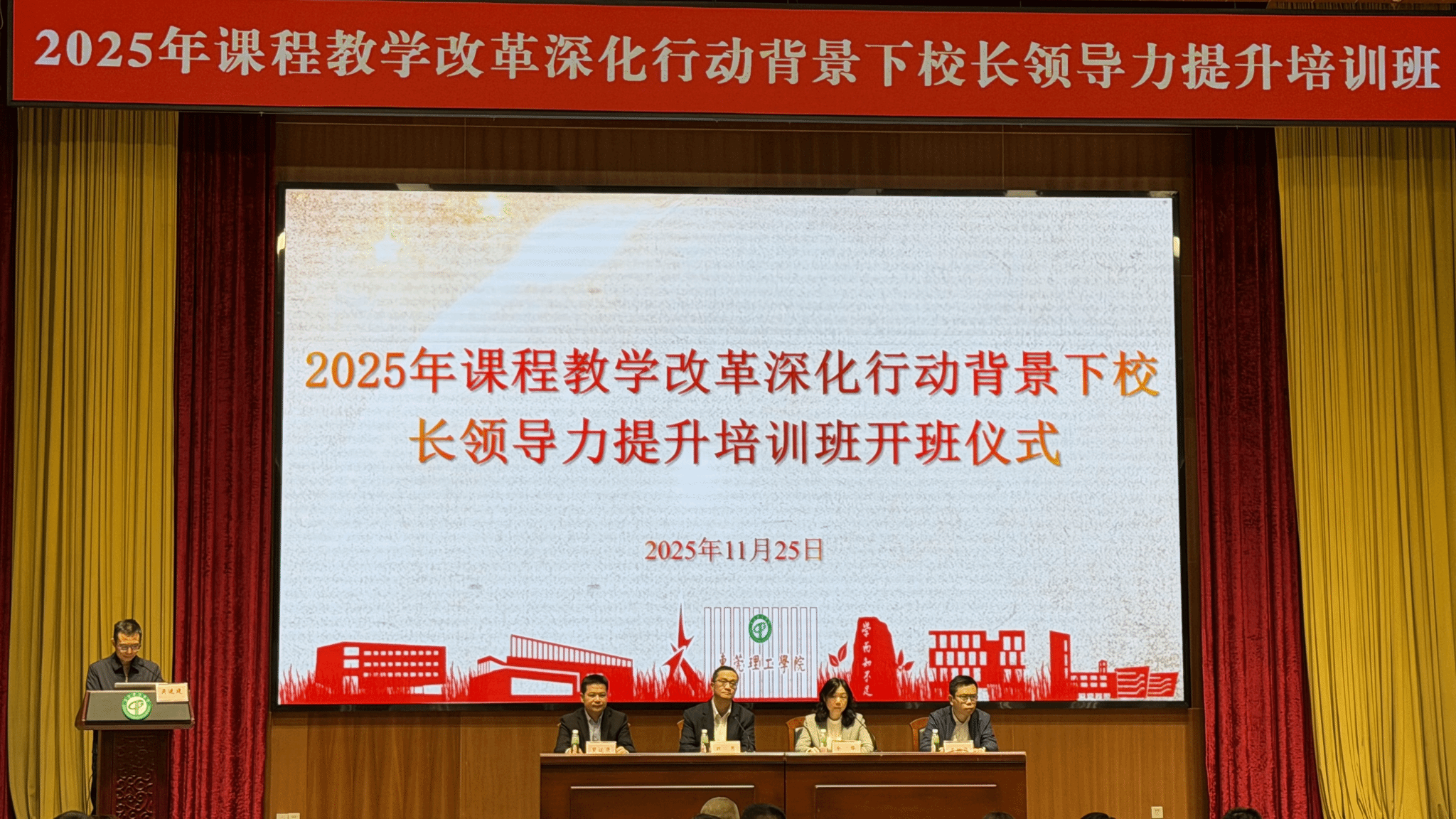 11月25日,“2025年课程教学改革深化行动背景下书记、校长领导力提升培训班”在东莞理工学院松山湖校区正式开班。本次培训由东莞理工学院与韶关市浈江区教育局联合主办、东莞理工教育集团承办,旨在扎实推进“双百行动”,助力基础教育管理者提升课程领导力与办学水平。