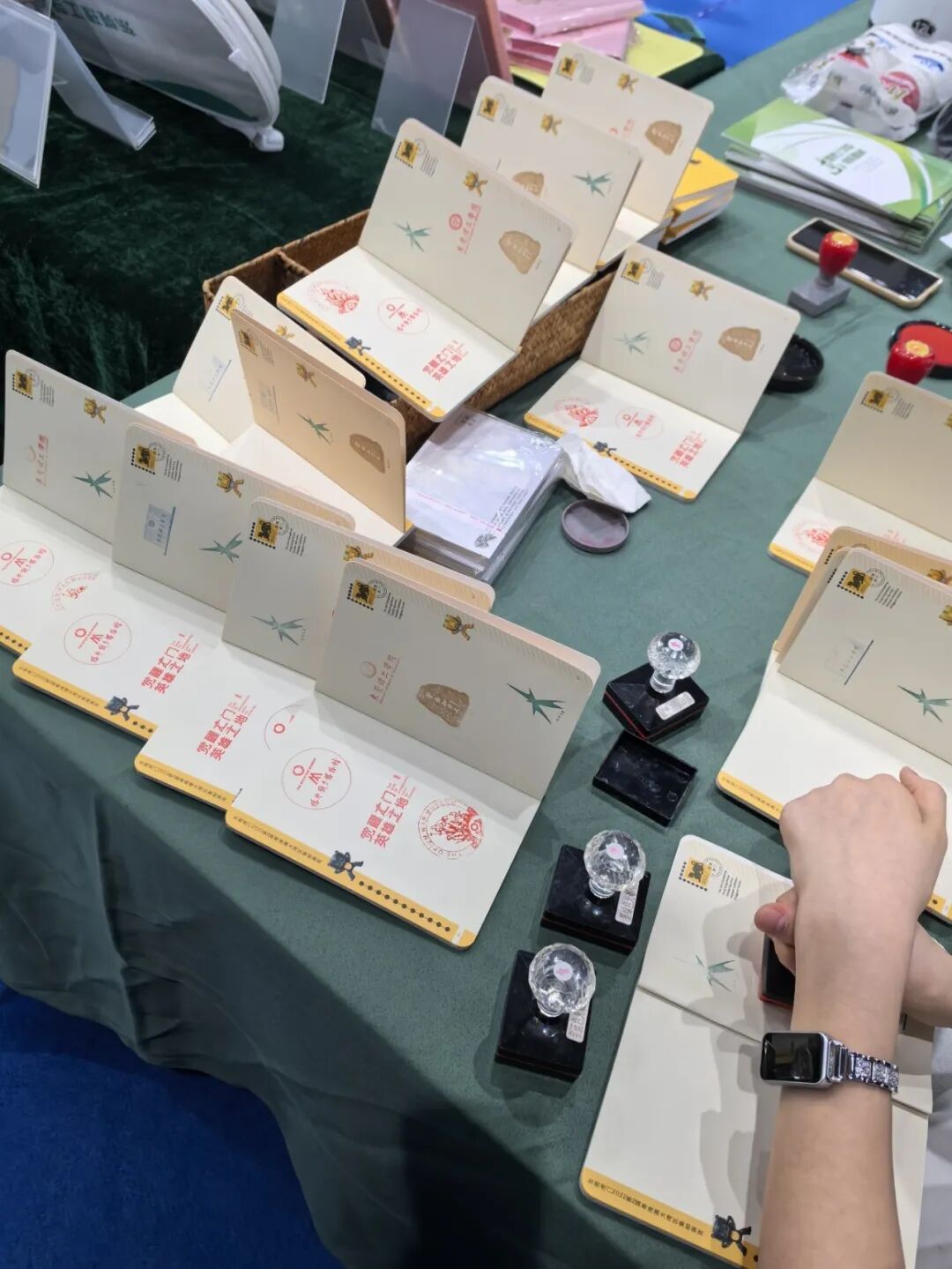 除了文创产品之外,现场还设置了明信片集章送祝福的打卡点,给校友们提笔写下对母校的祝福、投入信箱,将美好传递。