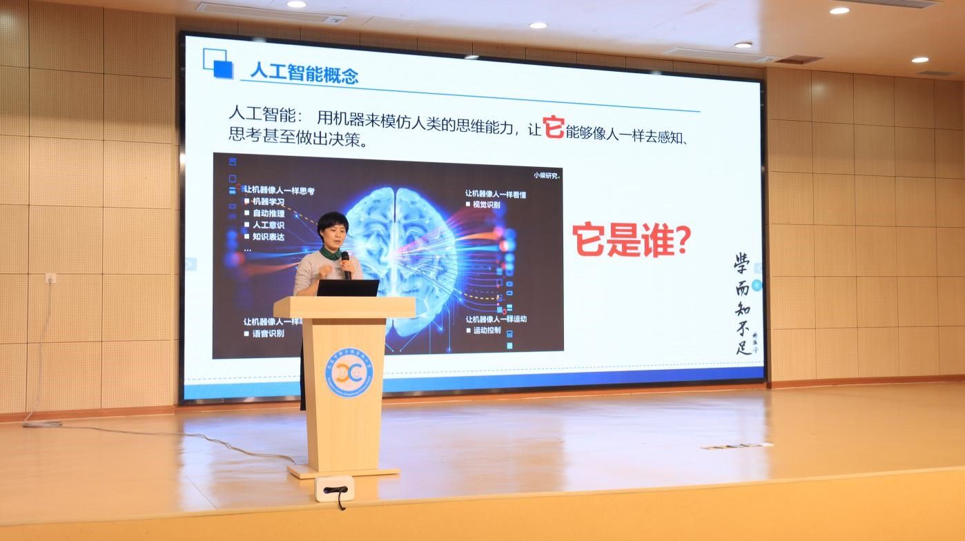 “什么是人工智能?”“它是谁”“怎样实现人工智能?”尹玲教授以一系列的问题启发学生对人工智能的探索,并通过棋类比赛、AIVA作曲、人形机器人、ChatGPT等具体的举例讲解人工智能的概念。