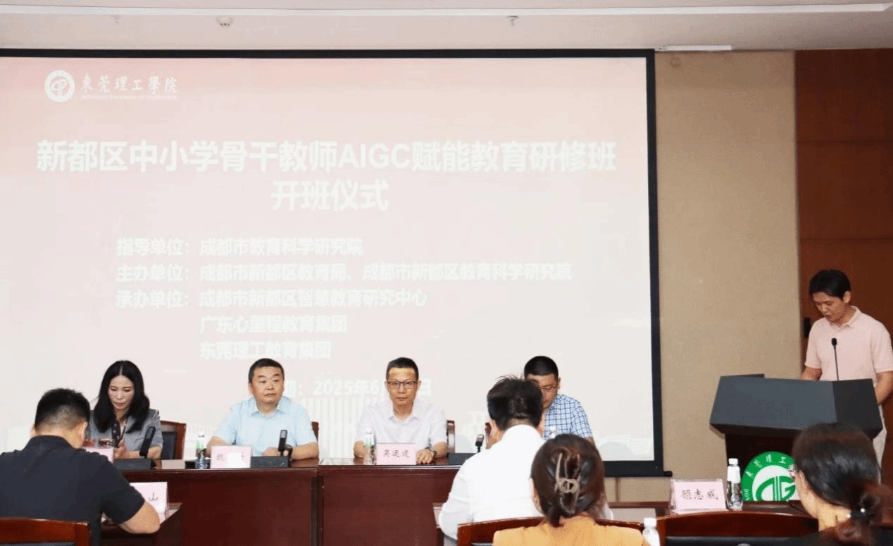 6月23日上午,一场聚焦教育前沿、赋能教师成长的盛会——“新都区中小学骨干教师AIGC赋能教育研修班”开班仪式在东莞理工学院(松山湖校区)学术会议中心盛大举行。此次研修班由成都市教育科学研究院担任指导单位,成都市新都区教育局、成都市新都区教育科学研究院主办,广东心里程教育集团、成都市新都区智慧教育研究中心、东莞理工教育集团联合承办,共同为粤蜀两地的基础教育事业注入新动能。